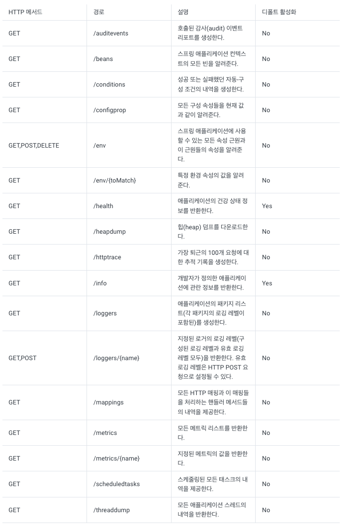 Spring Actuator는 스프링 부트 프레임워크에서 제공되는 라이브러리로서 스프링 푸트 애플리케이션의 모니터링이나 메트릭과 같은 기능을 HTTP와 JMX 엔드 포인트를 통해서 제공한다.