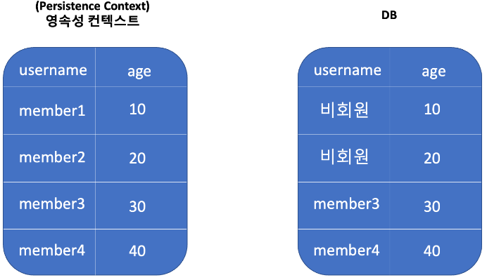 .where(member.age.lt(28)) // 28살 미만은 이름을 전부 비회원으로 바꿔라